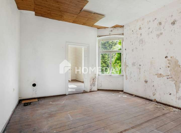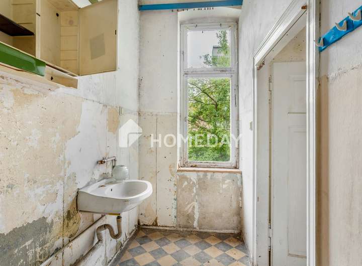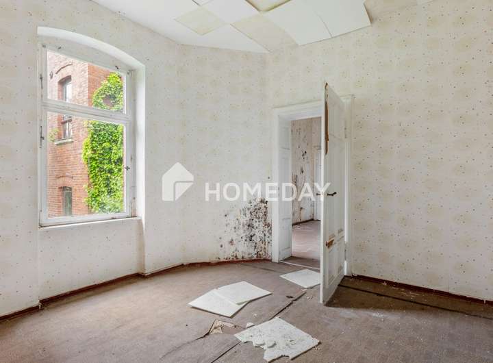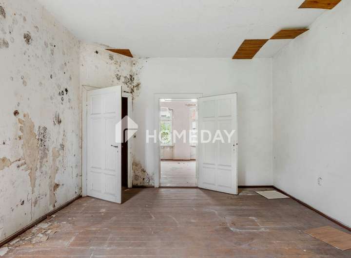 Zweifellos: Die Immobilie ist stark sanierungsbedürftig. Die beigefügten Fotos aus der Wohnung im ersten Obergeschoss vermitteln einen Eindruck vom Zustand der Innenräume und vom Umfang der bevorstehenden Maßnahmen. Es besteht derzeit keine funktionierende Heizungsanlage, ebenso wenig sind Strom- und Wasseranschlüsse aktiv. Doch gerade hierin liegt die besondere Gelegenheit: Wer Mut zur Sanierung, ein tragfähiges Konzept und unternehmerischen Weitblick mitbringt, kann hier ein stilvolles und wertbeständiges Wohnensemble entwickeln.