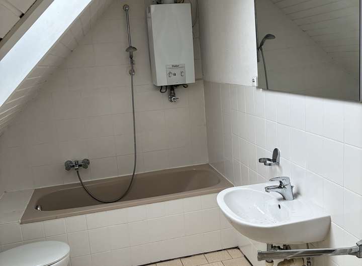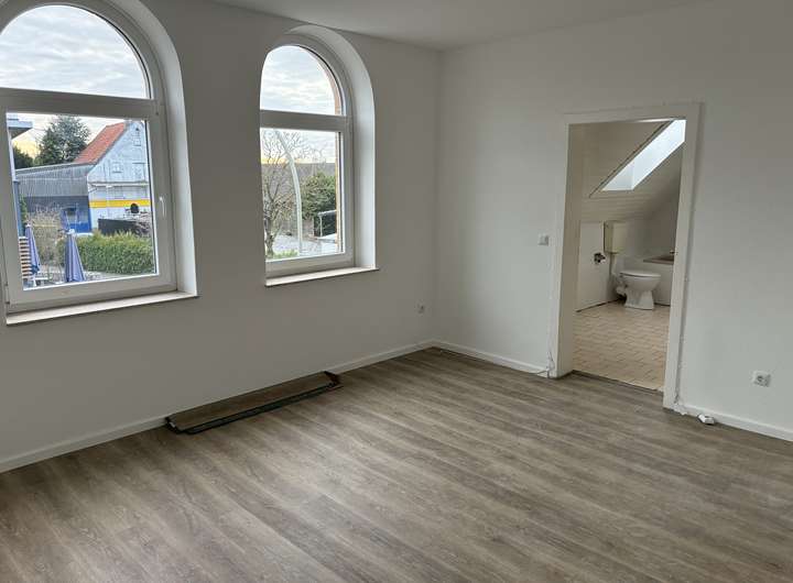 Die Wohnung ist in der ersten Etage und ist (bis auf das Badezimmer) gerade renoviert worden.
