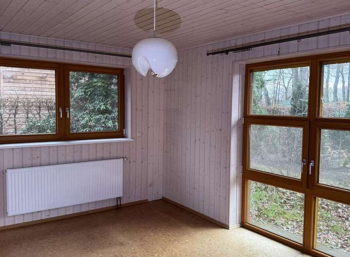 Die Materialauswahl unterstreicht die Wohnqualität: Fliesen in Küche, Badezimmer und Flur sorgen für Pflegeleichtigkeit, während hochwertiger Vinylboden in den Wohnräumen für ein angenehmes Wohngefühl sorgt. Dank der pflegeleichten Holzvertäfelungen müssen die Wände nicht tapeziert werden.