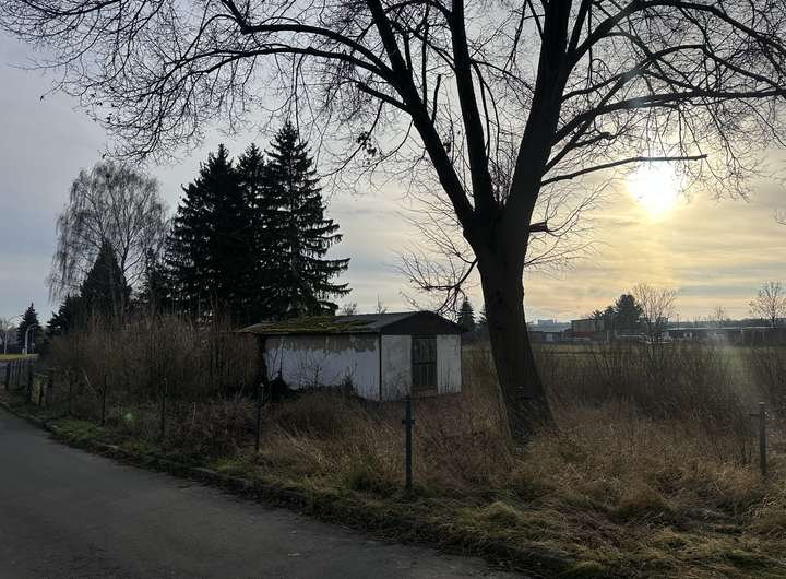 Bei dem zum Verkauf stehenden Grundstück handelt es sich um ein verwildertes Gartengrundstück mit den Resten einer Gartenlaube. Es verfügt über eine Fläche von 1998 m². Das Grundstück, in einer ruhigen Wohnstraße, wurde in den letzten Jahren von grobem Wuchs befreit, ist aber erneut zugewuchert.