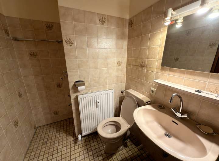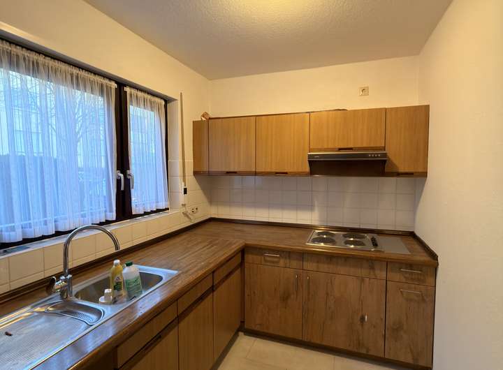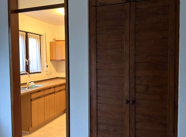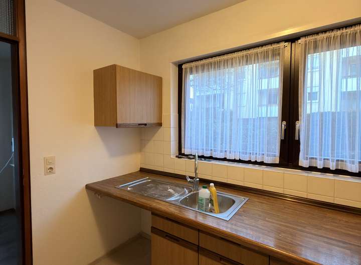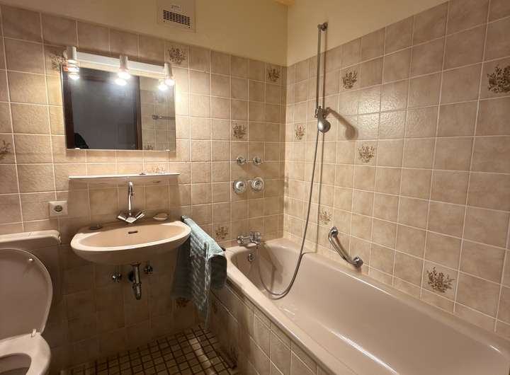 Das Bad ist mit einer Dusche, einem WC sowie einem Waschmaschinenanschluss ausgestattet und präsentiert sich funktional und ordentlich. Die separate Küche bietet gute Voraussetzungen für die tägliche Zubereitung von Mahlzeiten.