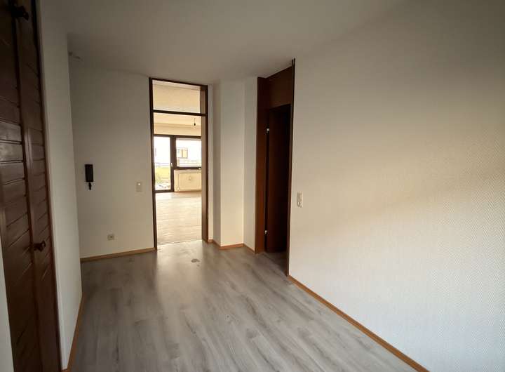 Über den freundlichen Eingangsbereich mit praktischem Einbauschrank gelangen Sie in das lichtdurchflutete Wohnzimmer, das einen angenehmen und einladenden Mittelpunkt der Wohnung bildet. Das Schlafzimmer bietet eine ruhige Rückzugsmöglichkeit und ausreichend Platz für individuelle Gestaltung.