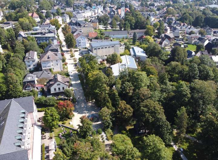Das einzigartige an der Liegenschaft ist das 9.193 m² große Grundstück, direkt ebenerdig angrenzend an den mit 40 ha größten deutschen Kurpark. Diese einmalige Chance auf ein Baugrundstück in dem aufstrebenden Kurort bekommen Sie so schnell nicht wieder.