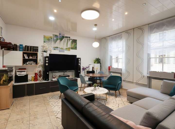 Das Gebäude selbst ist ein historisches Wohn- und Geschäftshaus, das Ende der 1990er-Jahre einer umfassenden Kernsanierung unterzogen wurde. Die Sanierungsmaßnahmen in den Jahren 1999/2000 umfassten wesentliche bauliche und technische Modernisierungen und bilden bis heute eine solide Basis für den sehr gepflegten Gesamtzustand. Die Gasheizung aus dem Jahr 2000 gewährleistet eine zuverlässige Wärmeversorgung. Insgesamt bietet diese Immobilie ca. 466 m² Wohnfläche, verteilt auf eine Gewerbefläche und vier Wohneinheiten.