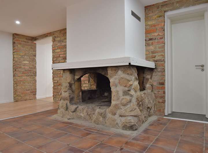 •imposanter Feldsteinkamin im Wohnzimmer