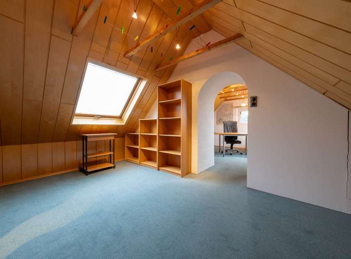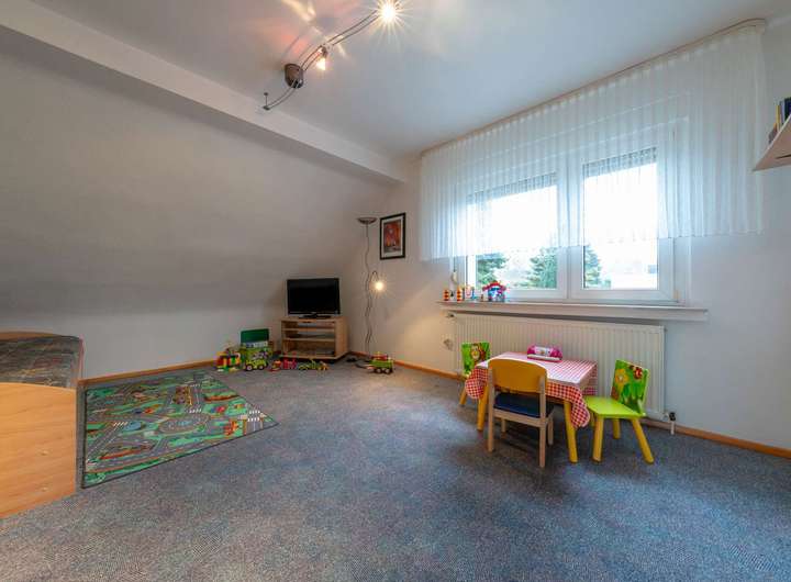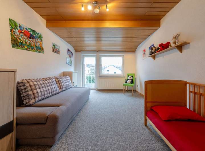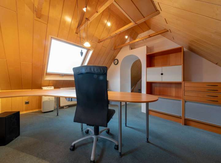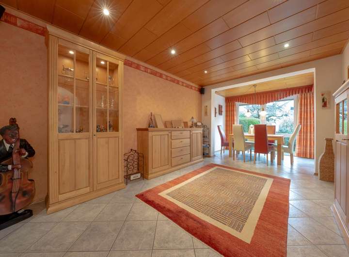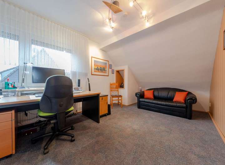 Die Wohnräume präsentieren sich in einem sehr gepflegten Zustand. Eine separate Küche, gemütliche Schlaf- und Arbeitszimmer sowie weitere Nutz- und Abstellflächen im Keller runden das Raumangebot ab. Weiteren Mehrwert bietet das ca. 20 m² große wohnlich ausgebaute Dachstudio. Zum Haus gehört zudem eine Garage mit elektrischem Tor direkt am Grundstück, die komfortables Parken ermöglicht.