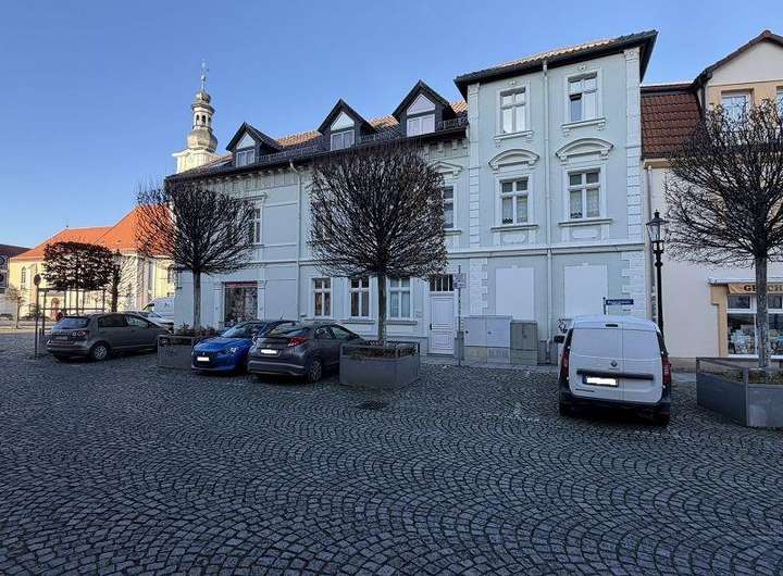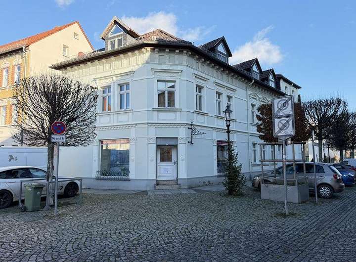 Im Erdgeschoss befindet sich eine vermiete Ladenfläche, im Obergeschoss eine 2 Raum- und eine 3 Raumwohnung sowie im Dachgeschoss jeweils zwei 2-Raumwohnungen. Die Wohnungsgrößen liegen zwischen 47 m² und 82 m². Insgesamt bietet das Wohn- und Geschäftshaus eine vermietbare Fläche von ca. 330 m². Neben den vermieteten Wohnungen sind im Innenhof 2 Stellplätze vermietet, insgesamt können bis zu 4 Stellplätze vermietet werden.