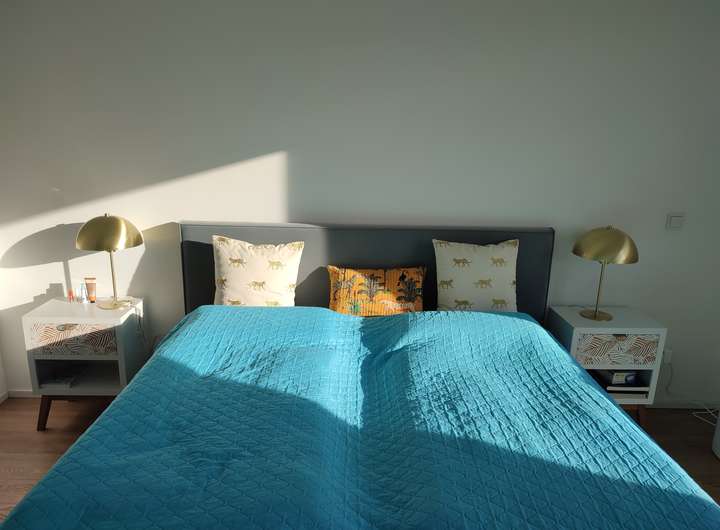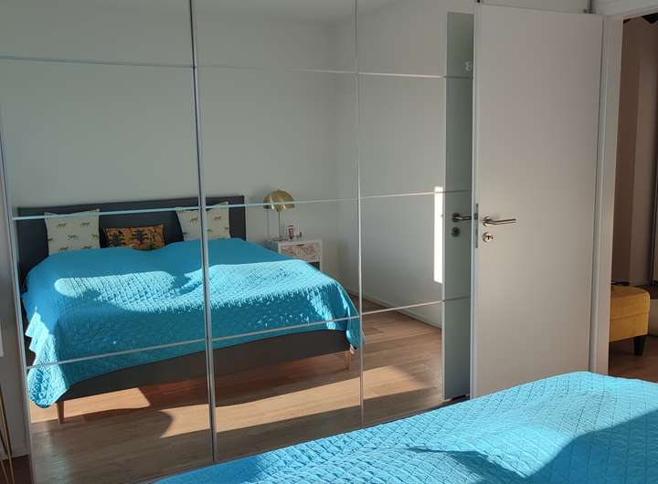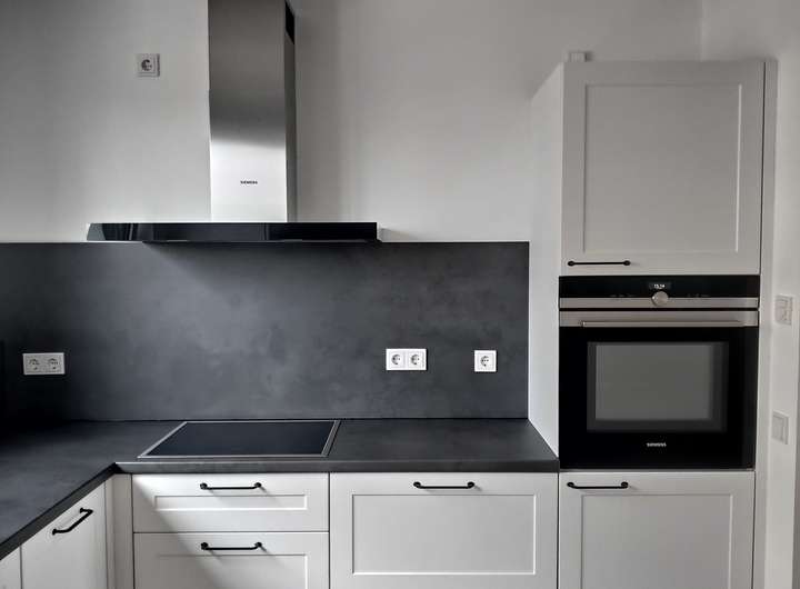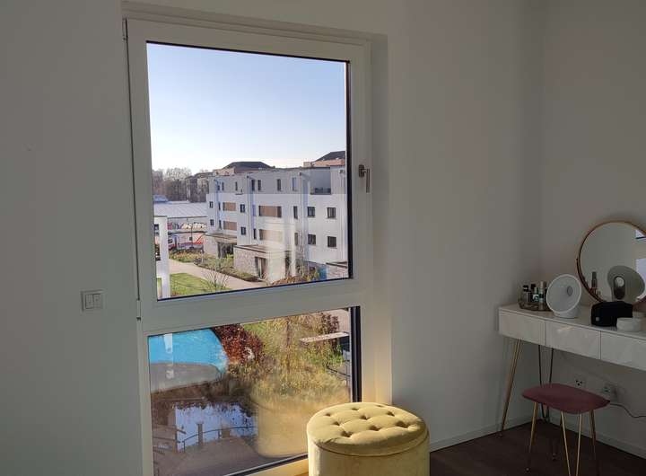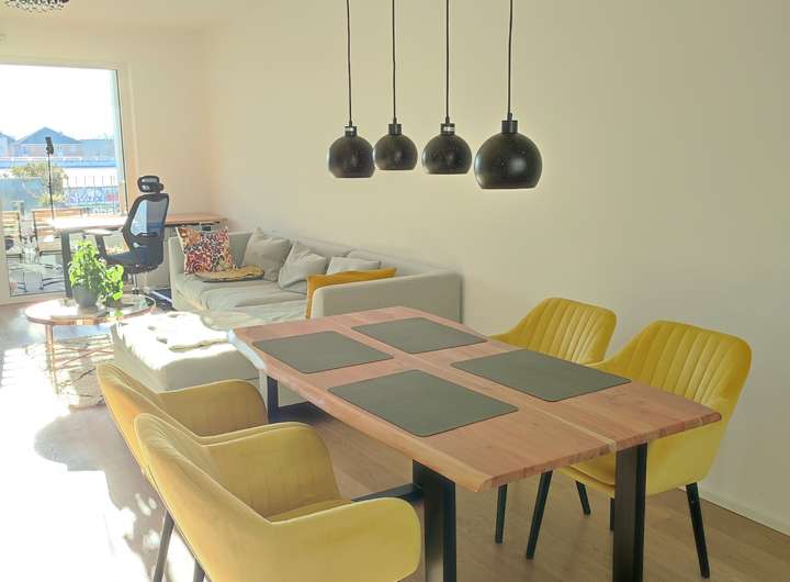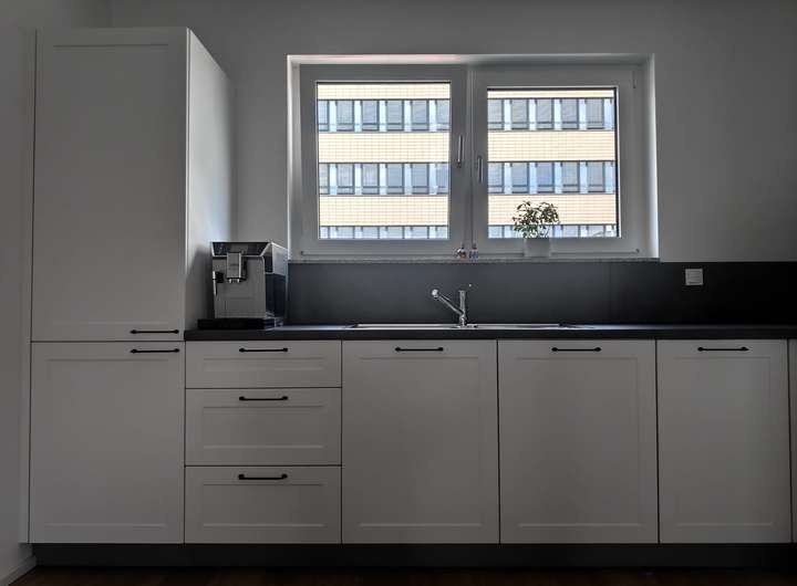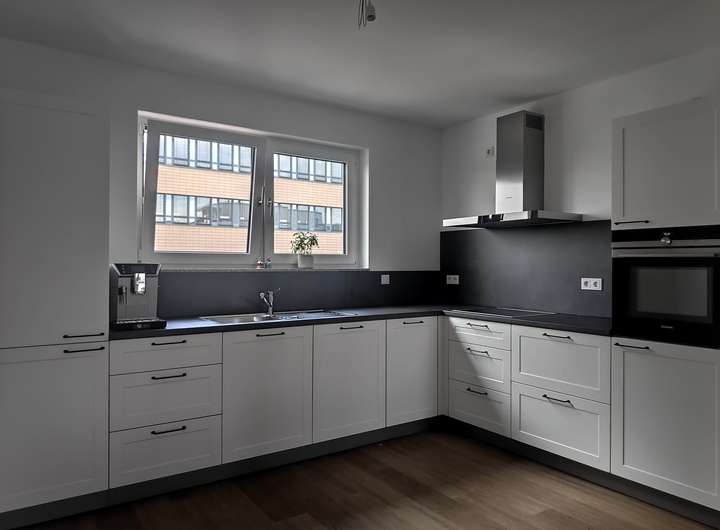 Enthält: Hochwertige Einbauküche (Müller/Siemens), neuwertiges Bett (180cm, gekauft Ende 2025) inkl. Matratzen, großer PAX-Schrank, Waschmaschine und Trockner (Bosch Serie 8, neu), Rolf Benz Sofa, Esstisch, Lampen.