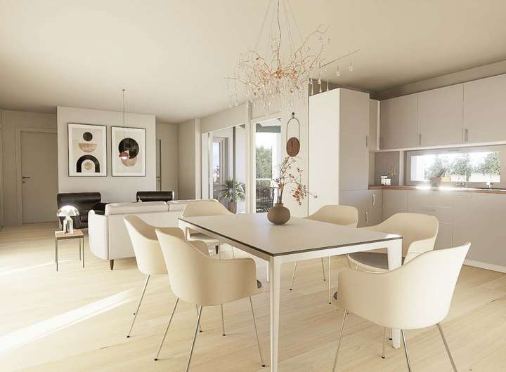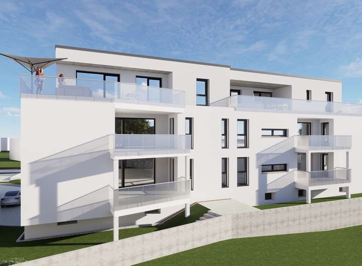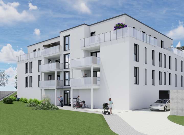 Das Neubauvorhaben wird im KfW-Effizienzhaus-40-Standard (GEG 2024) realisiert und steht für zeitgemäßen Wohnkomfort in gehobener Ausführung. Vorgesehen sind Parkettböden in den Wohnbereichen sowie pflegeleichte Fliesen in Küche sowie Sanitär- und Abstellbereichen. Für ein angenehmes Raumklima sorgt Fußbodenheizung. Ein Aufzug bietet komfortablen Zugang zu allen Ebenen.