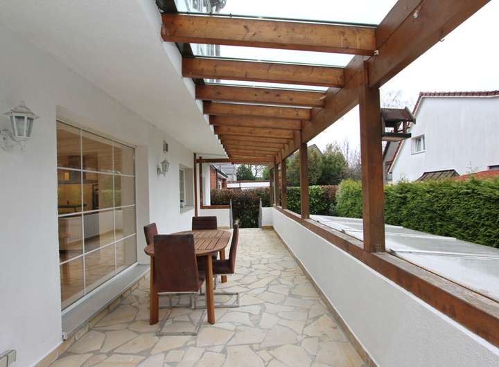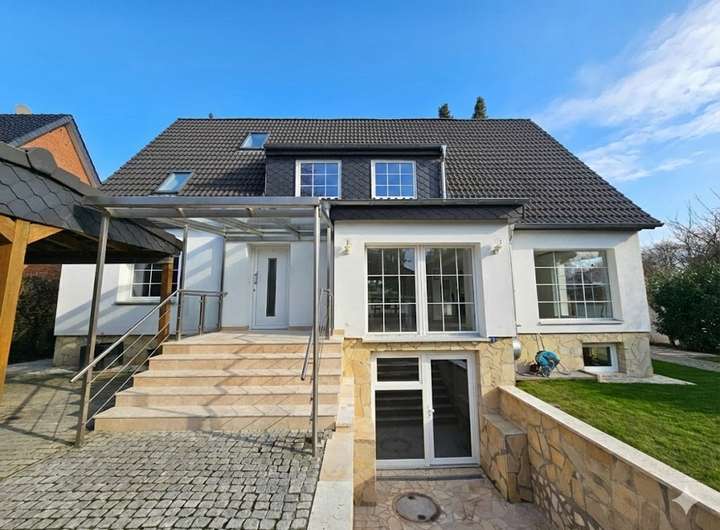 Ursprünglich im Jahr 1965 als Doppelhaus errichtetes, großzügiges und größtenteils modernisiertes Einfamilienhaus mit einer Wohnfläche von ca. 220 m² sowie einer zusätzlichen Büro-/Arbeitsbereichfläche im Souterrain.