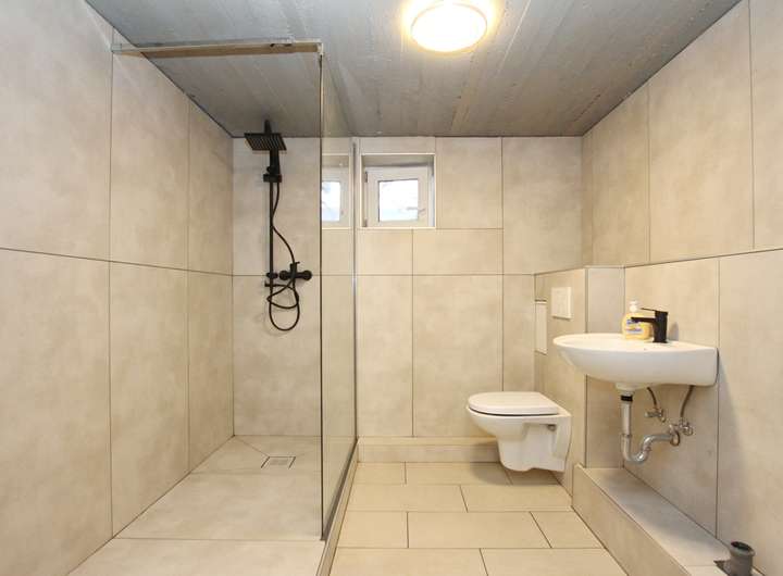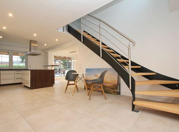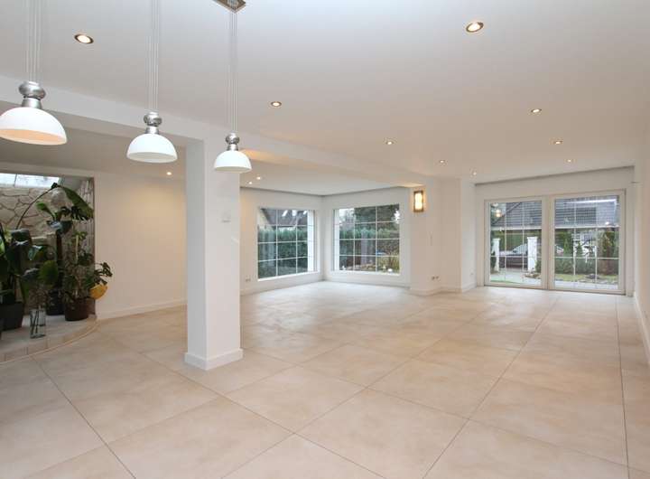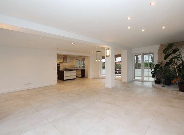 Das gesamte Erdgeschoss wurde erst kürzlich mit hellen, großflächigen Fußbodenfliesen versehen.