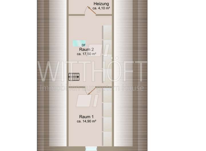 Zwei weitere ineinandergehende Zimmer befinden sich im ausgebauten Spitzboden - allerdings sind diese über eine Dachbodentreppe zu erreichen.