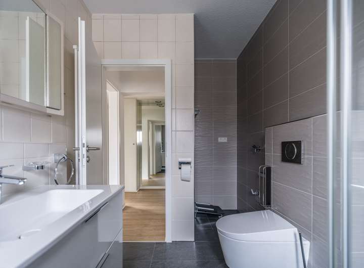 Die Wohnung wurde dieses Jahr mit viel Liebe zum Detail erneuert. Das Badezimmer präsentiert sich in modernem Design.
