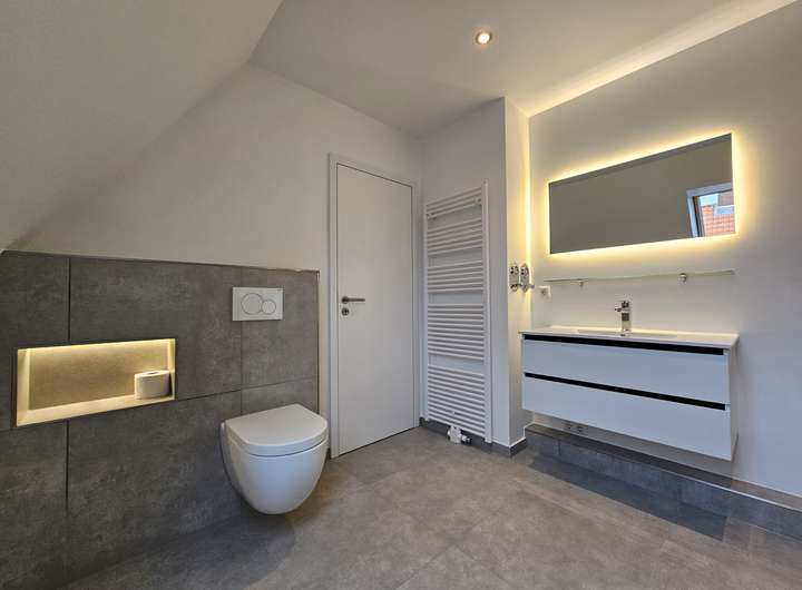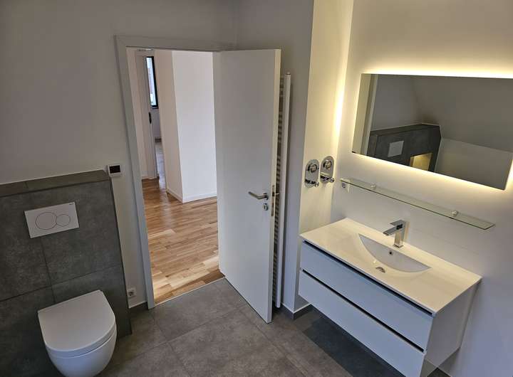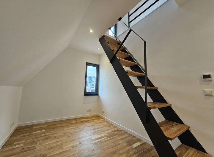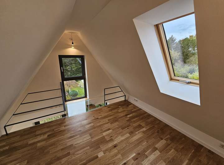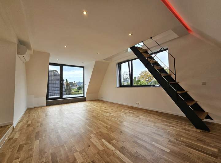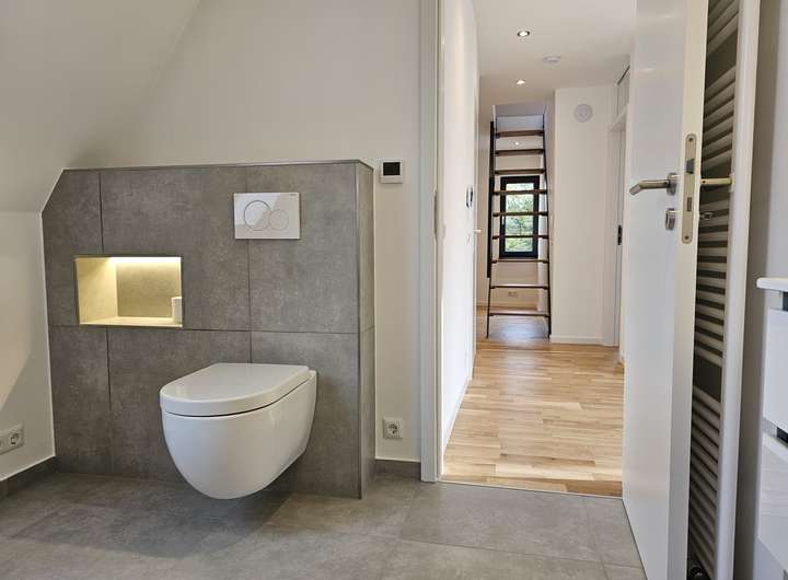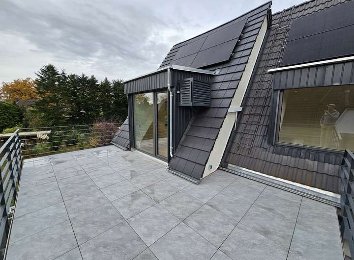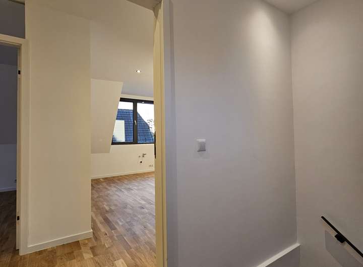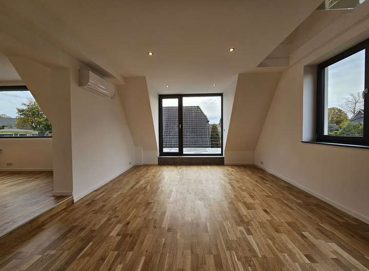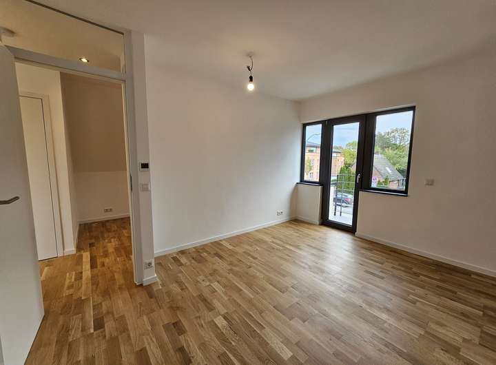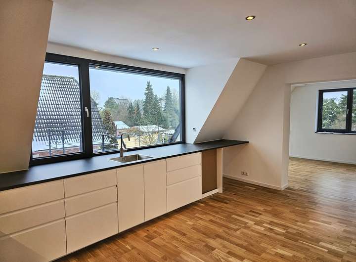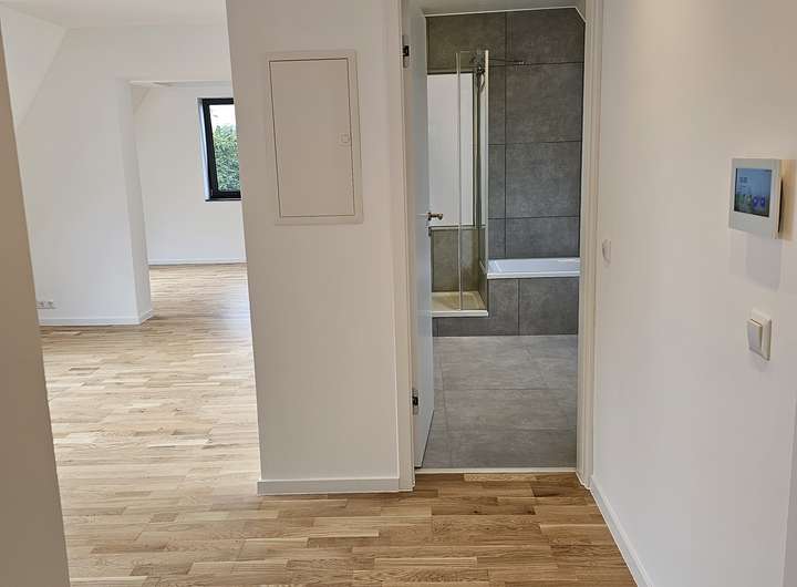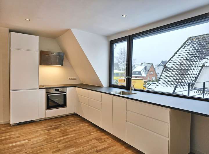 Herzlich willkommen in Ihrer großzügigen und lichtdurchfluteten Dachgeschosswohnung in Norderstedt. Die Wohnung bietet eine hochwertige Ausstattung, die ein außergewöhnliches Wohnambiente schafft. Sie kann zum 01.03.2026 bezogen werden. Bis auf das Bad sind alle Räume mit Echtholz-Eichenparkett ausgestattet. Die Wohnung verfügt über eine Fußbodenheizung mit digitalen Raumthermostaten, die auch individuell per App gesteuert werden können. Die Innenklingelstation ist über ein lokales Netzwerk mit der Türkamera verbunden. Beim Klingeln erscheint ein Live-Bild auf dem Bildschirm in der Wohnung und ermöglicht eine direkte Kommunikation (App Anbindung).