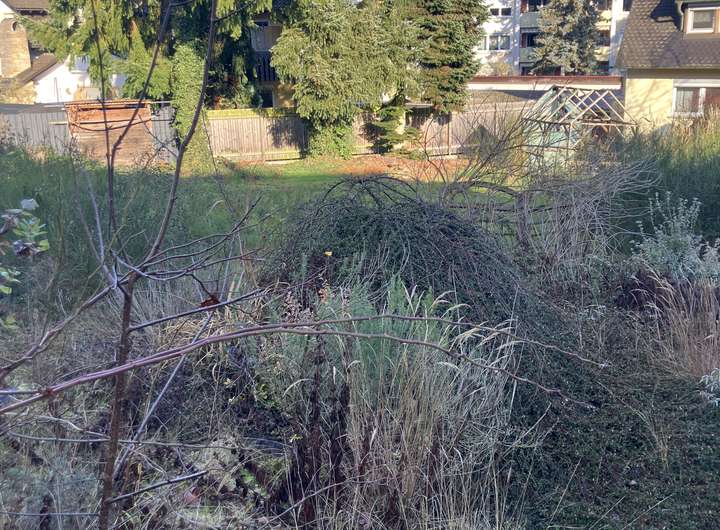 Garten. Das Haus ist seit Jahren nicht bewohnt oder vermietet.