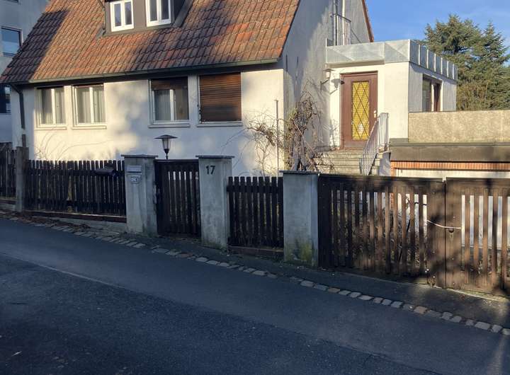 auf dem leicht abschüssigem Grundstück befindet sich ein abbruchw. EFH ca. 175 m² Wohnfl. mit Einliegerwohnung ca. 114 m² und Keller sowie ein großer