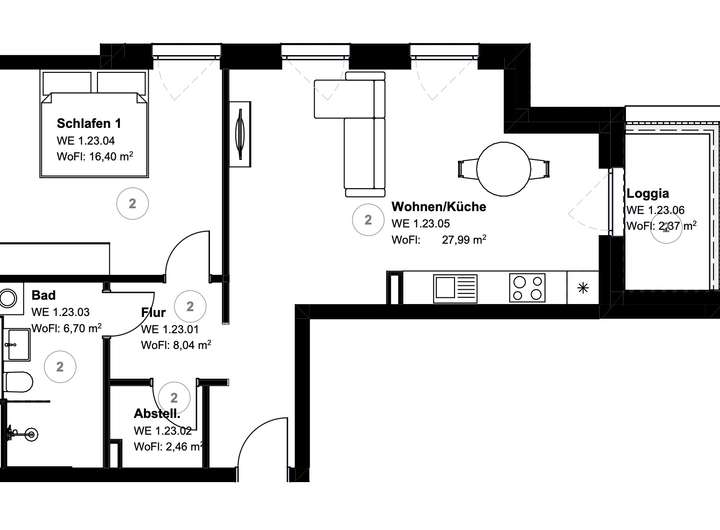Diese helle 2-Zimmer-Wohnung mit ca. 64 m² Wohnfläche befindet sich im 2. Obergeschoss eines neu gebauten Mehrfamilienhauses in Ahrensburg. Die Wohnung verfügt über einen eigenen Balkon und eine Dachterrasse zur gemeinschaftlichen Nutzung, ideal zum Entspannen im Freien. Ein Aufzug erleichtert den Zugang zu allen Etagen, und die Barrierefreiheit der Wohnung bietet zusätzlichen Komfort. Die Einbauküche wird zeitnah eingebaut. Ein Kellerabteil bietet zusätzlichen Stauraum.