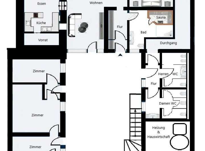 Alle im Exposé dargestellten Grundriss-Maße und Beispiel Dekorationen dienen der unverbindlichen Orientierung. Es handelt sich um Circa-Werte ohne Gewähr auf Richtigkeit oder Maßgenauigkeit. Verbindlich sind nur die Angaben aus den Bauunterlagen oder einem professionellen Aufmaß.