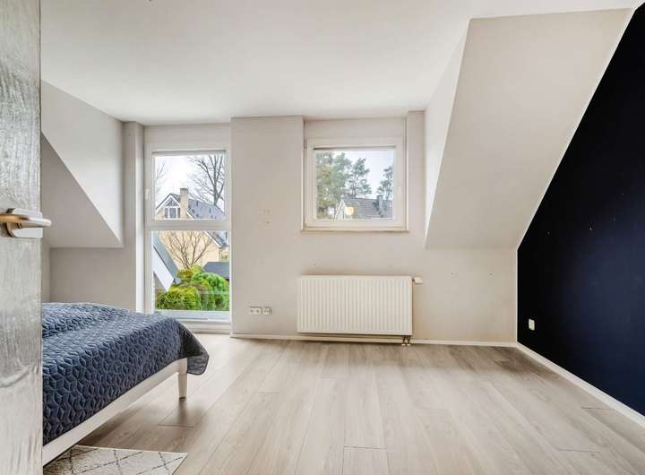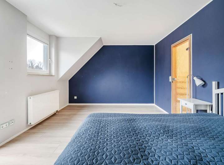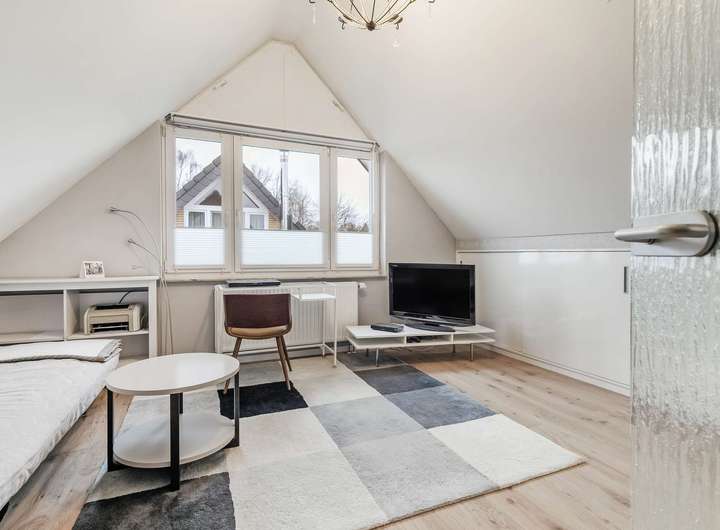 Im Dachgeschoss steht Ihnen ein weiteres Zimmer zur Verfügung, das sich ideal als Homeoffice Gästezimmer oder Rückzugsort eignet. Trotz der Dachschrägen überzeugt dieser Raum durch eine beeindruckende Deckenhöhe und ein angenehmes Raumgefühl.