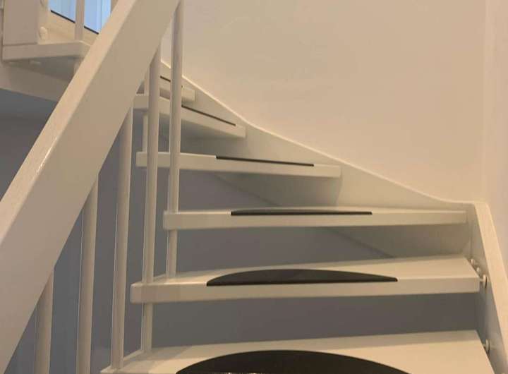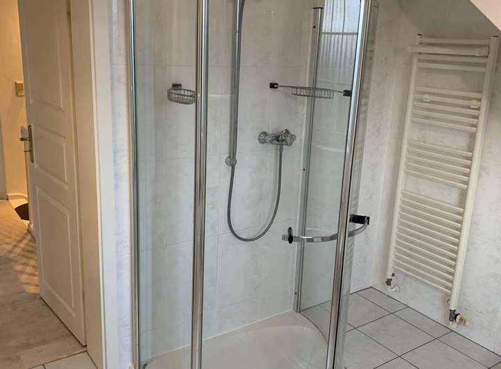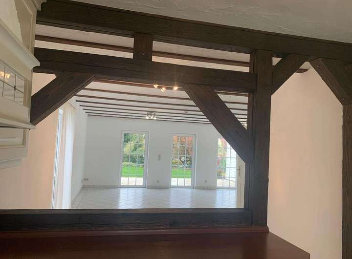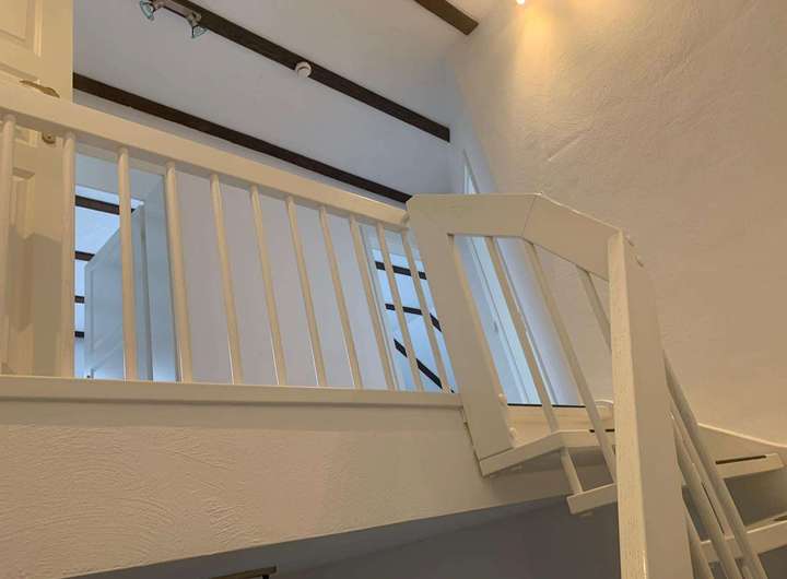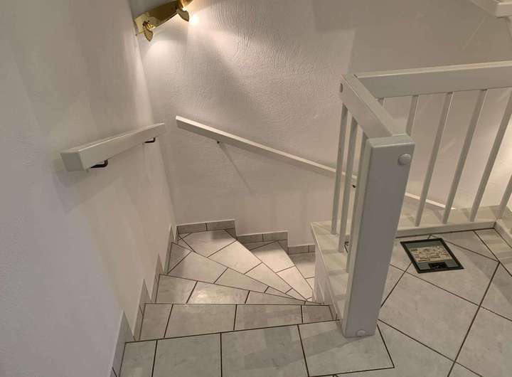 Im Obergeschoss finden Sie drei Schlafzimmer, ein Flur und ein ganz tolles Badezimmer mit Eckbadewanne vor.Über eine klassische weiße Holztreppe gelangen Sie vom Erdgeschoss ins Obergeschoss.Die Innentüren vom Objekt sind auch ganz in weiß gehalten. Die Böden vom Objekt wurden ausgelegt mit Fliesen und mit Vínylboden. Die weißen Kunststoff-Fenster sind aus Doppelverglasung. Die Schlafzimmer und auch das Wohnzimmer sind von Licht durchflutet durch die bodentiefen Fensterelemente, welche im Sproßenstil angelegt sind. In den meisten Decken sind etliche dunkelbraune Holzbalken eingezogen was sehr komfortabel aussieht. Die Raumaufteilung wurde super gestaltet. Man kann in allen drei Ebenen sich einrichten und benötigt keinerlei Reparatur oder Erneuerung.Die tolle weiße Eschentreppe hat Stufenintarsie " Star Galaxy".