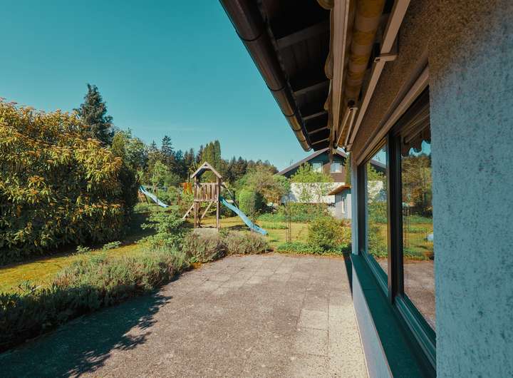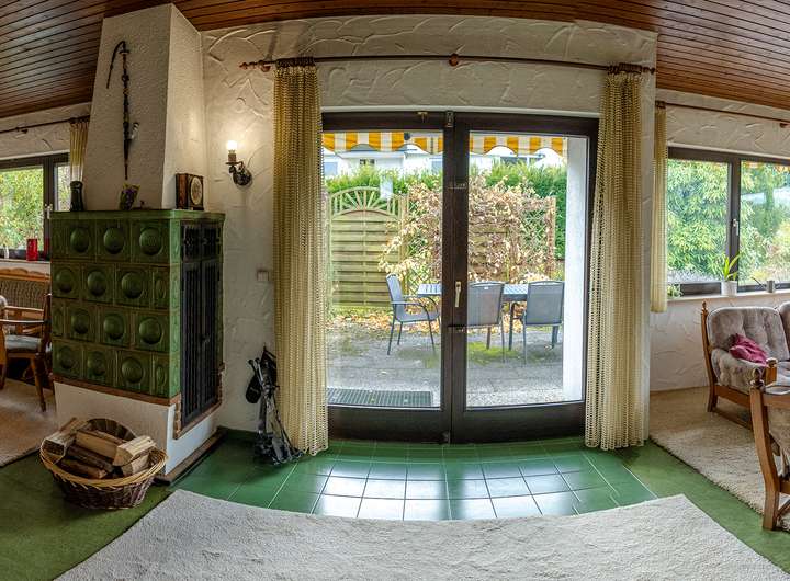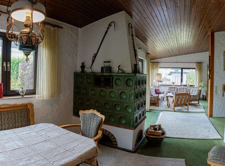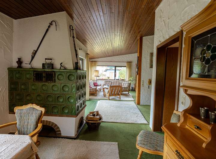 Im Erdgeschoss stehen Ihnen zwei Zimmer sowie ein Duschbad zur Verfügung. Diese Ebene bietet vielfältige Nutzungsmöglichkeiten – ob als Rückzugsort für Familienmitglieder, Gästezimmer oder Homeoffice. In der darüberliegenden Wohnebene befindet sich das Herzstück des Hauses: der gemütliche Wohn- und Essbereich mit integrierter Küche. Von hier aus gelangen Sie direkt auf die Sonnenterrasse und in den weitläufigen Garten. Ein schöner Kachelofen sowie die hohe Raumhöhe schaffen ein behagliches Ambiente, in dem sich das Familienleben in vollen Zügen genießen lässt.