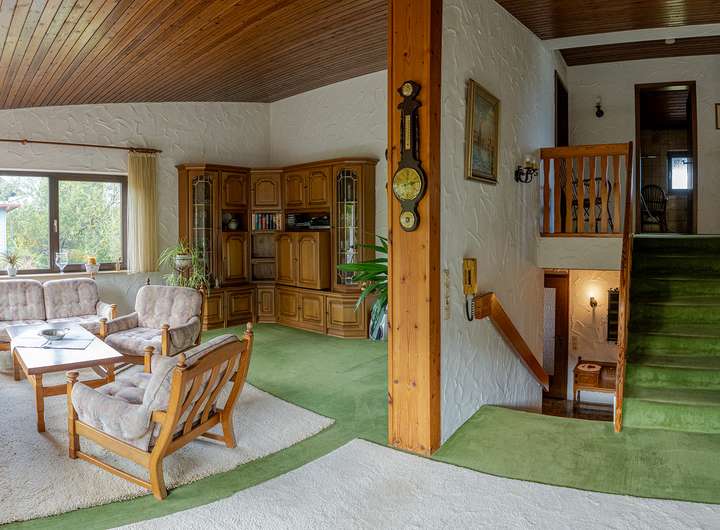 Schon beim Ankommen empfängt Sie eine angenehme, offene Atmosphäre. Die durchdachte Architektur mit versetzten Wohnebenen verleiht dem Haus einen individuellen Charakter und schafft ein luftiges Wohngefühl mit viel Licht und Freiraum. Jeder Bereich fügt sich harmonisch in das Gesamtkonzept ein und sorgt für eine wohnliche, einladende Stimmung.