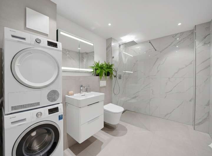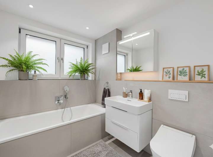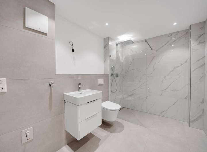 Klima & Belüftung: Fußbodenheizung mit Kühlfunktion sowie ein hybrides Lüftungssystem für stetigen Luftwechsel und Feuchtigkeitsschutz.
