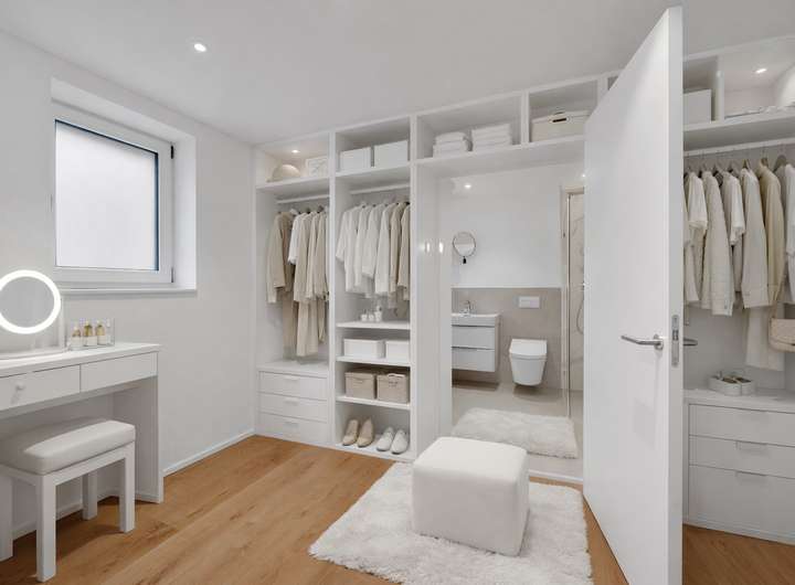 Private Master-Suite: Schlafzimmer mit direktem Zugang zur hochwertigen Ankleide und eigenem Bad.