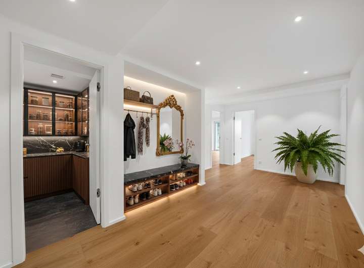 Ankommen ohne Stufen - Komfort im Alltag Ihr Wohnerlebnis beginnt in der großzügigen XXL-Garage (über 30 m²) mit Vorbereitung für E-Mobilität. Von hier gelangen Sie auf kurzem, ebenem Weg zum Hauseingang. Der moderne Personenaufzug bringt Sie von dort stufenlos und direkt in Ihre Wohnebene. Kein Treppensteigen. Kein Umweg. Ein Komfort, der heute begeistert - und morgen unverzichtbar wird.