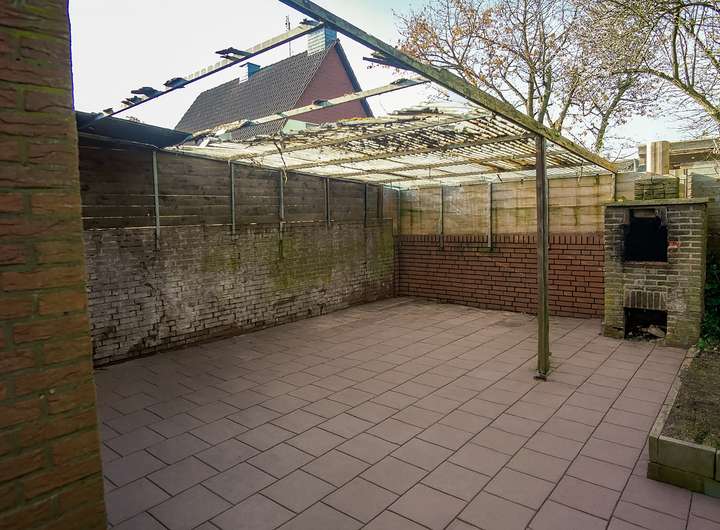 Abgerundet wird das Angebot durch eine geräumige Garage mit zusätzlichem Stauraum, einen praktischen Schuppen für Gartengeräte und Fahrräder sowie eine überdachte Terrasse mit gemauertem Kamin. Dieser geschützte Bereich bietet Raum für gesellige Stunden und erweitert den Wohnkomfort deutlich.