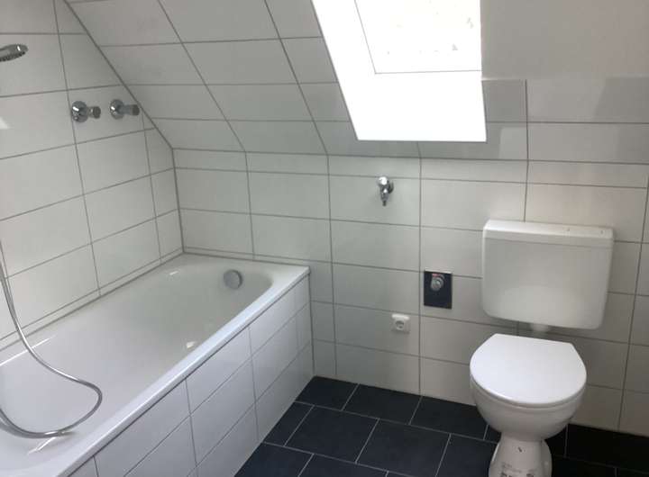 Bad mit Fenster; Zentralheizung; Gas; Isolierverglasung; Mieterkeller; Gegensprechanlage; Waschküche; Waschmaschinenanschluss; vollständige Wärmedämmung; Gemeinschaftsgarten; Dachgeschoss; Mehrfamilienhaus; Badewanne eingemauert;