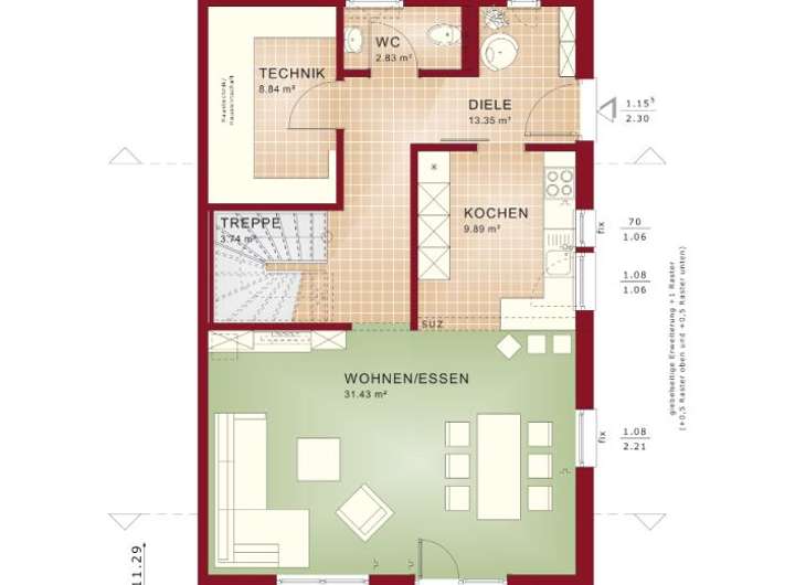 Besonders hervorzuheben sind die lichtdurchfluteten Räume, die durch große Fensterflächen ein einzigartiges Wohngefühl schaffen. Ob beim Frühstück in der Sonne oder bei einem gemütlichen Abendessen - die offene Gestaltung des Wohnbereichs lässt viel Licht hinein und verleiht dem gesamten Haus eine freundliche Atmosphäre. Optional bieten sich Balkone oder Terrassen an, welche die Verbindung zur Natur schaffen und zusätzlichen Raum für Freizeitaktivitäten bieten.