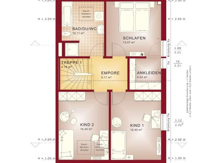 Das CELEBRATION 139 beeindruckt durch eine kluge Raumaufteilung auf insgesamt 139,61 Quadratmetern Wohnfläche verteilt auf fünf Zimmer. Diese großzügige Fläche sorgt dafür, dass jede Ecke Ihres Hauses optimal genutzt wird - ob als gemütliches Schlafzimmer, funktionales Arbeitszimmer oder geräumiges Kinderzimmer. Die Aufteilung ermöglicht eine perfekte Balance zwischen Gemeinschaftsflächen und privaten Rückzugsorten für die ganze Familie.