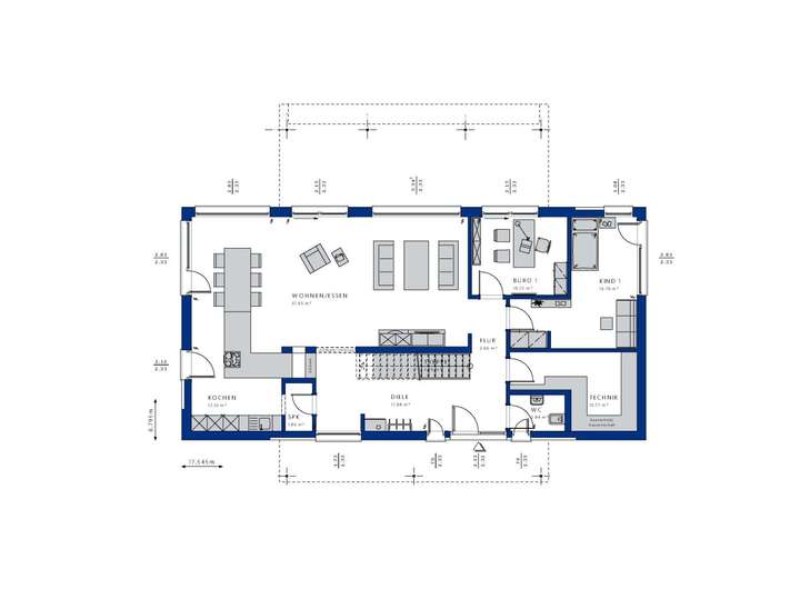Der Grundriss des CONCEPT-M 180 bietet mit insgesamt zehn Zimmern eine einzigartige Flexibilität, Ihr zukünftiges Zuhause individuell zu gestalten. Auf 240 m² großzügiger Wohnfläche sind Ihrer Kreativität und Raumaufteilung keine Grenzen gesetzt. Ob geräumiges Familienzimmer, separates Arbeitszimmer oder Rückzugsorte für die Kinder - hier finden Sie die perfekte Fläche für jede Lebenssituation. Die durchdachte Anordnung von Schlafzimmern und Badezimmern sorgt für ausreichend Privatsphäre und Wohlbefinden, während die offenen Wohnbereiche einladend und lichtdurchflutet sind.