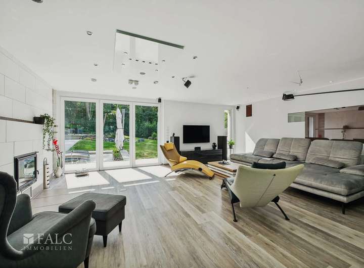 - großzügiges Wohnzimmer mit wasserführendem Kamin