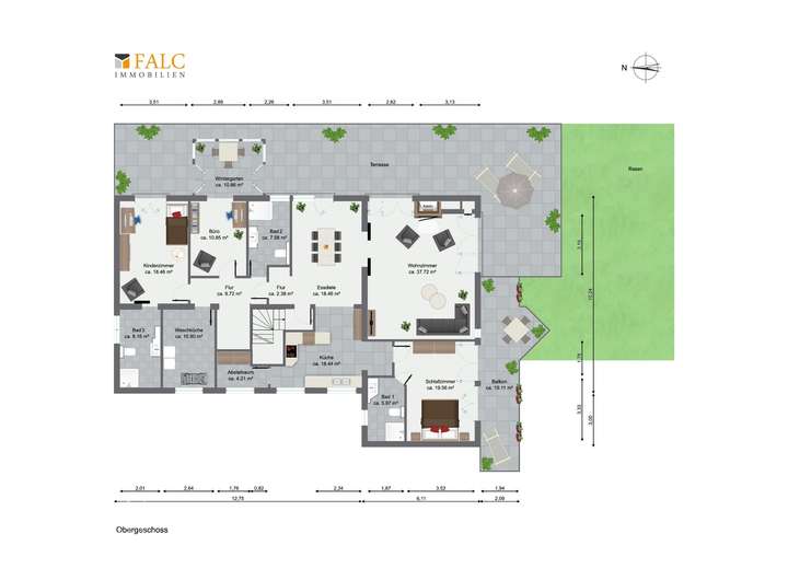- eine Terrasse (begehbar vom Kinderzimmer)