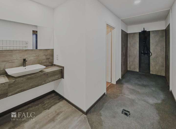 - Bad mit bodengleicher Dusche, Handtuchheizkörper