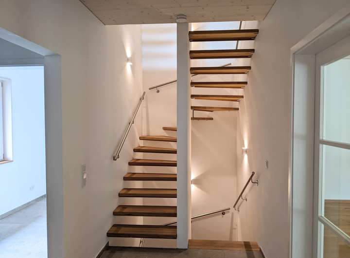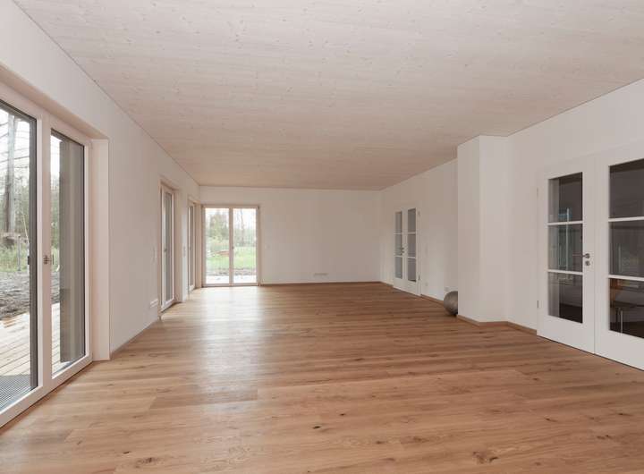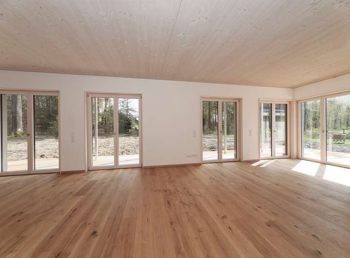 In allen Ebenen, inklusive Untergeschoss, sorgt die Fußbodenheizung für ein angenehmes Raumklima.