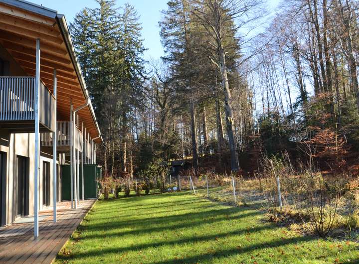 Ein besonderes Highlight ist der pflegeleichte Süd-Westgarten mit der großzügigen, umlaufenden Terrasse, hier können Sie den ganzen Tag die Sonne genießen. Die zwei Südbalkone bieten einen herrlichen Weitblick ins Grüne. Hier sind Sie nicht von anderen Häusern umgeben, sondern haben freie Sicht.