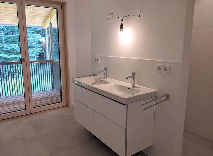 - Zwei Badezimmer, eins mit Dusche und Balkonzugang, das andere mit Badewanne