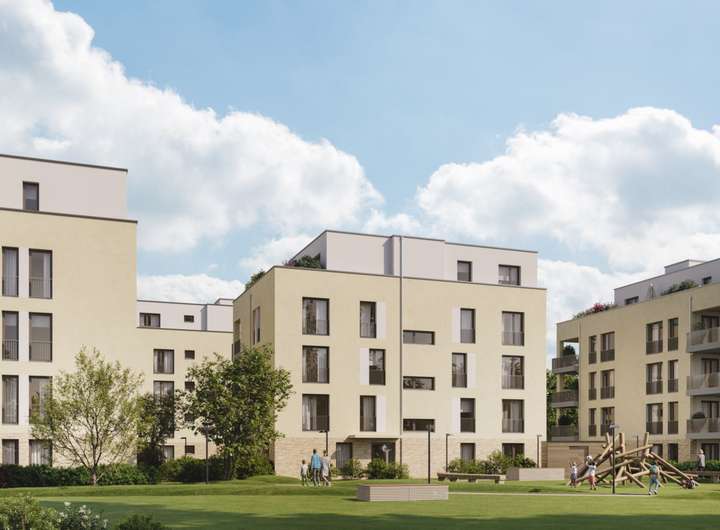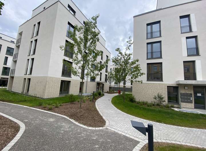 Eine übergeordnete Parklandschaft ist Grund- und Leitgedanke dieses Wohnprojektes. Als verlängerter grüner Arm der „Burgen Gärten“ verbinden auf dem Areal großzügige Grünflächen mit altem Baumbestand und locker gruppierte Wege die einzelnen Projektgrundstücke und verzahnen sie mit der umgebenden Landschaft. Für die jüngere Generation gibt es mehrere Spielplätze.