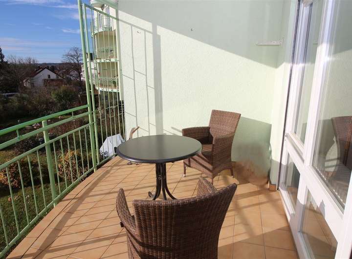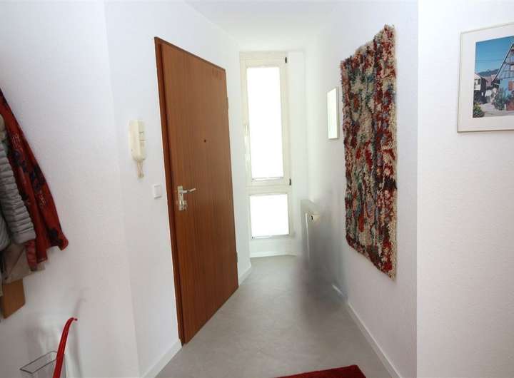 Vom zentralen Flur aus gelangt man in das Wohnzimmer mit angrenzender Küche und dem gut nutzbarem und überdachten Balkon. Auch die Schlafzimmer, Bad und WC sind vom Flur aus erreichbar.
