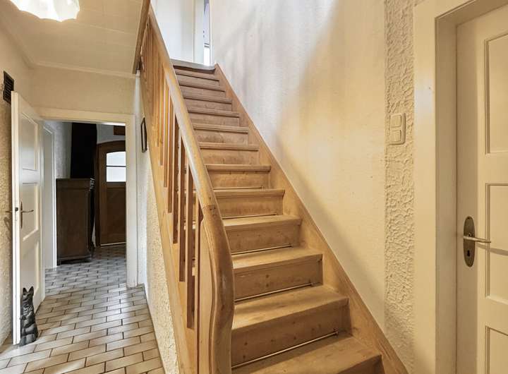 - schöne Holztreppe vom Erdgeschoss ins Dachgeschoss