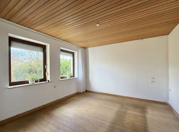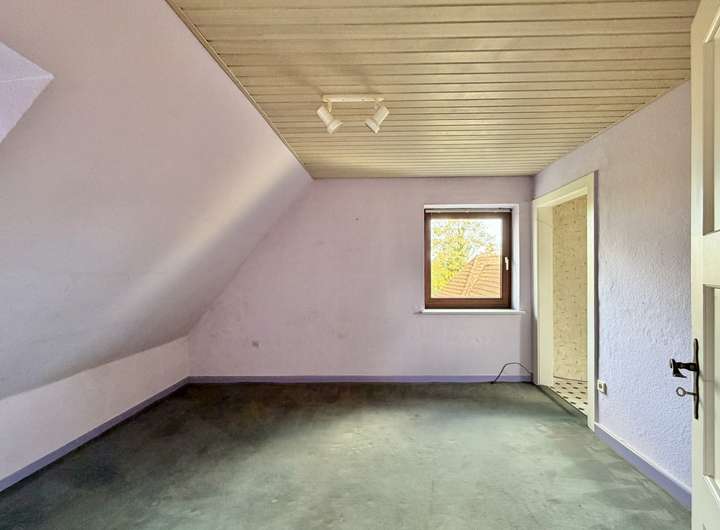 - Obergeschoss: Flur mit Abstellraum, Zimmer 3 und 4, Zimmer 5. mit Zugang zu einer Küche (z. B. Ausbau zu einem Badezimmer oder zu einer Ankleide)