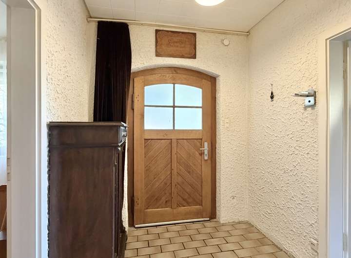 - massive Holzeingangstür mit Fischgrätelementen und Oberlicht mit Sprosse, Kassettentüren in den Zimmern