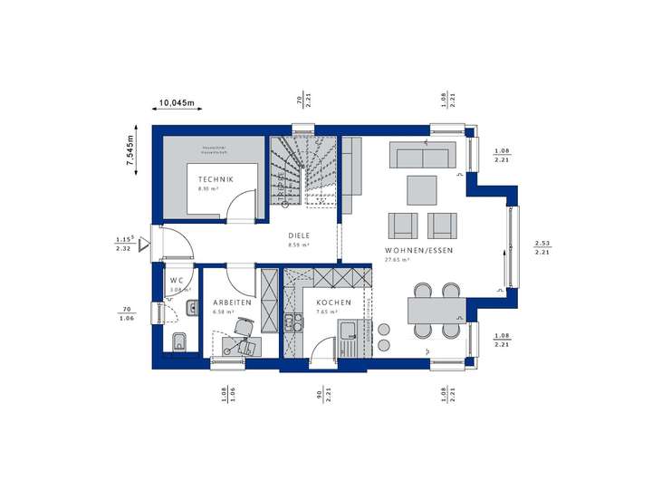 Das EDITION 123 bietet Ihnen nicht nur Komfort, sondern auch zahlreiche Extras, die den Wohnalltag bereichern. Der zusätzliche Raum direkt hinter der Haustür kann als Homeoffice oder Multifunktionsraum genutzt werden, was besonders in der heutigen Zeit von großem Vorteil ist. Der helle Wohnbereich, der durch große Fensterfronten lichtdurchflutet wird, sorgt für ein einladendes Ambiente, während die offene Küche mit direktem Zugang zum Essbereich den perfekten Rahmen für gesellige Abende mit Familie und Freunden schafft.