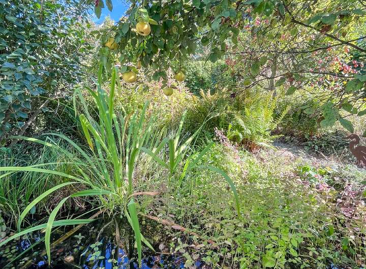 Tageszeiten. Weiterhin finden Sie, Obstbäume, wie Äpfel und Birnen, einem kleinen Teich und Raum für individu-elle Gestaltungsideen. Mit etwas Pflege lässt sich der