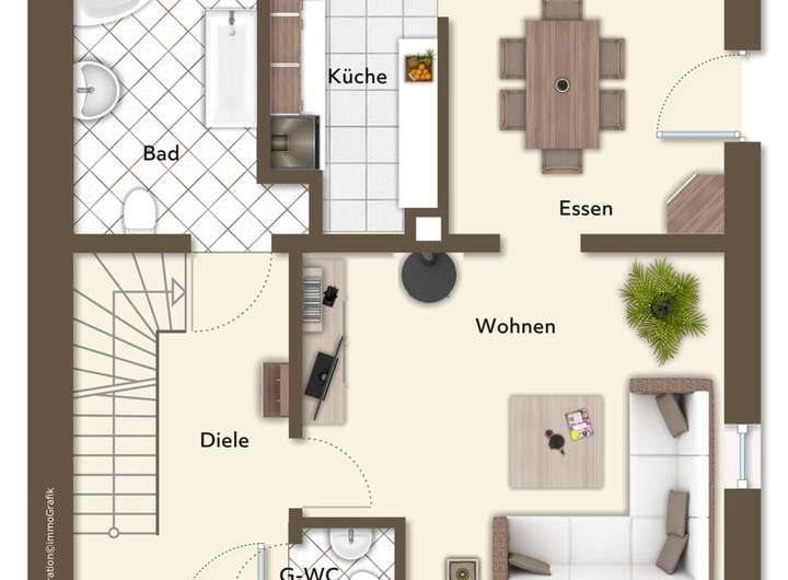 Beim Betreten des Hauses empfängt Sie die Diele, die mit knapp über 10 m² ausreichend Platz für Garderobe und einen freundlichen Empfang bietet. Gleich zur Rechten befindet sich das modernisierte Gäste-WC, 2024 komplett erneuert.