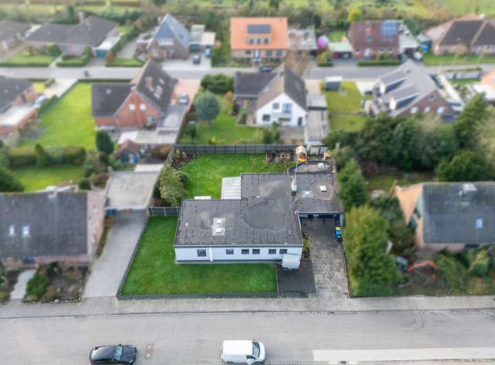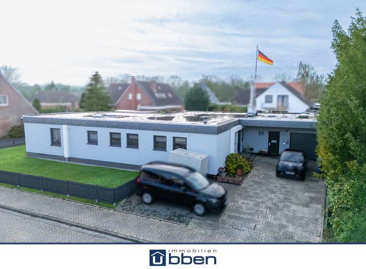 Dieses ebenerdige Wohnhaus überzeugt durch seine großzügige und durchdachte Raumaufteilung sowie durch einen modernen, zeitgemäßen Ausstattungsstandard. Auf einer Ebene stehen rund 185 qm Wohnfläche zur Verfügung und bieten ein komfortables Wohnen ohne Stufen. Ergänzt wird das Raumangebot durch ca. 44 qm Nutzfläche sowie eine Garage, die zusätzlichen Stauraum und Komfort gewährleistet.