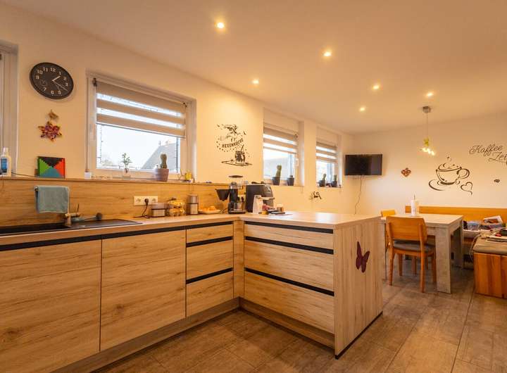 Beheizt wird das Wohnhaus über eine moderne Brennwerttherme, die eine effiziente und zuverlässige Wärmeversorgung gewährleistet. Insgesamt präsentiert sich diese Immobilie als äußerst gepflegtes, modernes Zuhause, das großzügiges Wohnen auf einer Ebene in Verbindung mit zeitgemäßem Komfort ermöglicht.